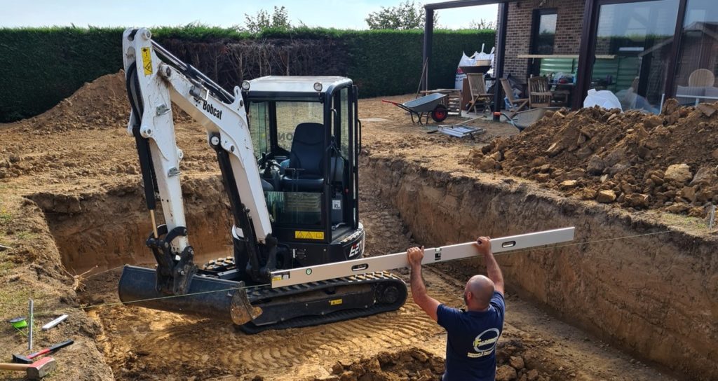 Un service complet et détaillé en accord avec vous ou votre pisciniste . Forfait tout compris avec excavation, machiniste expérimenté, évacuation directe des terres, création de la dalle, bétonnage, aménagement, finitions .