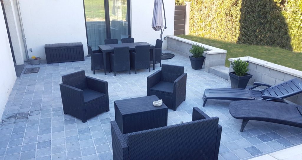 klinkers et pierres bleues, allées aménagées. Construction sur mesure de votre environnement.